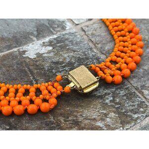 Vintage 1940's Handmade Bright Orange Beaded Collar Necklace Woven Various Size