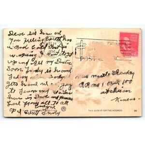 Vintage linen era postcard. Back side has wear from album removal. Will have some corner dings and age wear. Please view both sides of photos.