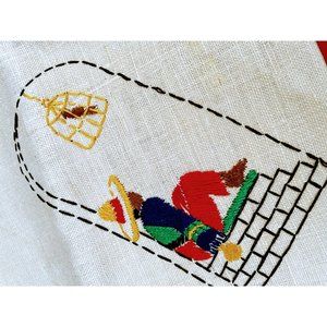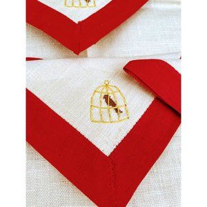Vintage 1940s Linen Luncheon Tablecloth Napkins Man Sombrero Birdcage Embroidery