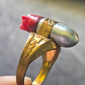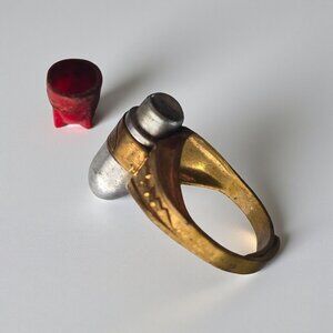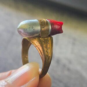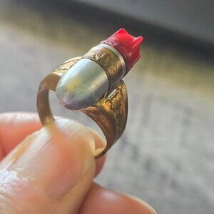 Silver bullet top with removable red Lucite tailfin. This ring still unscrews to reveal the hidden message compartment.