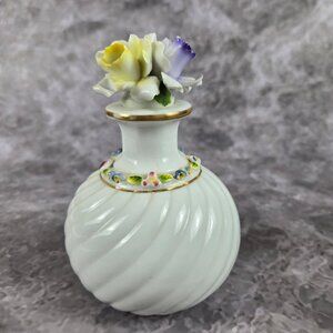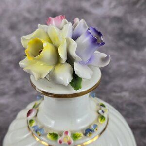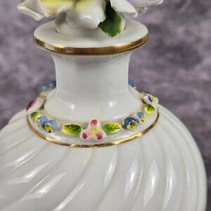 vintage collectible collector collection decor decoration home office dresser bookshelf vanity gift gifts birthday holiday porcelain 1940s 40s hand painted perfume jar bottle lid floral flowers elegant girly feminine classy classic