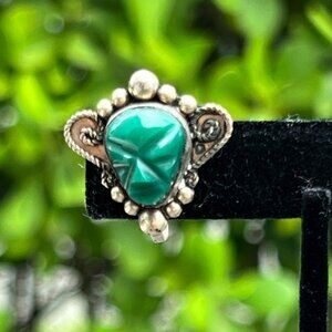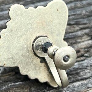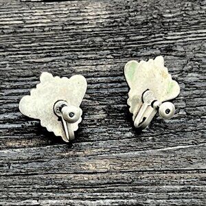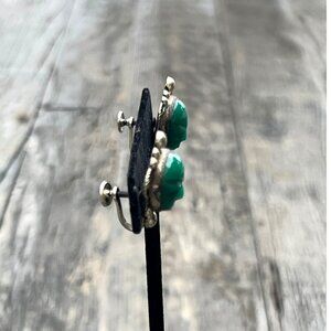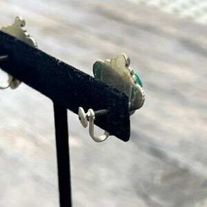 Vintage 1940's Mexican Alpaca Silver Green Tribal Mask Screw Back Earrings