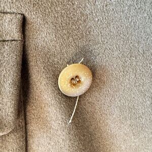 vintage 1940s pea coat in olive green wool. Very smart slim fit, double breasted, pockets at either side. This is a military coat with a rich history. Kahn Tailoring the tailor firm was a principal manufacturer of uniforms for the United States military during World War I and remained a major supplier through World War II. Following Kahn’s death in 1934, son-in-law Mortimer C. Furscott succeeded as company president and directed a steady expansion. By 1948, the business encompassed its Indianapolis factory and 12 retail stores nationwide, including a Washington, D.C., store near the White House that outfitted Mrs. Harry Truman and daughter Margaret in 1947. Over 2,000 dealers reportedly carried Kahn’s clothing by the late 1940s. This coat was likely purchased from the DC store. This coat has weight to it, it is a high quality wool and lined inside.