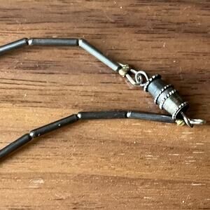 The inner wire is magnetic but the beads and clasp are NOT at all. I haven't acid tested it to know if it's sterling silver but it very well could be. I have two of these in my closet with genuine stones and similar lovely rose / flower beads.