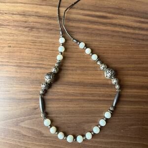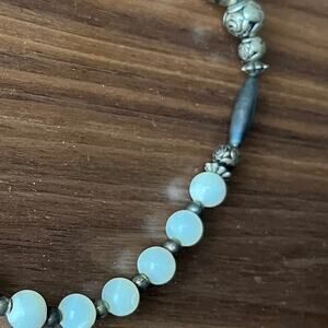 Vintage 1940s Mother of Pearl and Silver Metal Rosebud Beaded Necklace