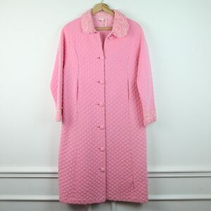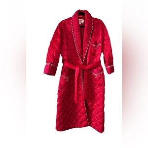 Vintage 1940s Princess Quilted Peach Satin Robe Corded Embroidered Lapel & Belt