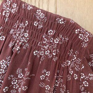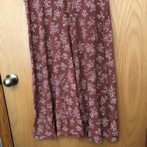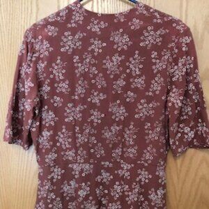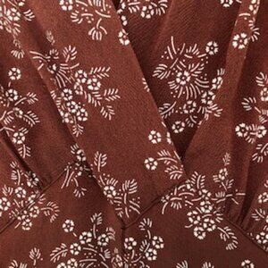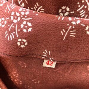 Vintage 1940s Rayon Dress Floral Reddish Brown V Neck Shoulder Gathers 14 Large