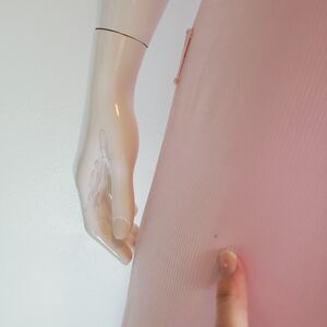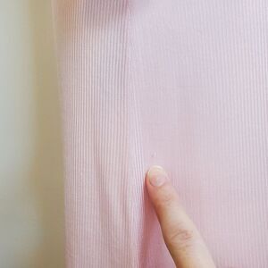 Vintage 1940s Rogers Run Proof light pink semi-sheer sleeveless v-neck maxi slip dress with 2 belt loops. Marked "Rogers Run Proof Tubize Yarn 16."