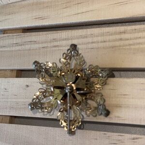 Tags: vintage jewelry, Snowflake Brooch, Starburst Brooch, Floral Brooch, Vintage Brooch, Costume Jewelry, Statement Brooch, Gold Tone, Rhinestone,Green Rhinestone, Clear Rhinestone, Crystal, Emerald Green, mid century