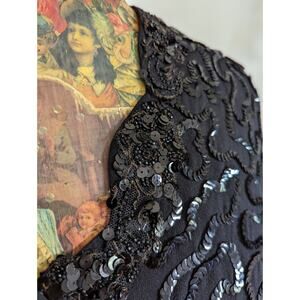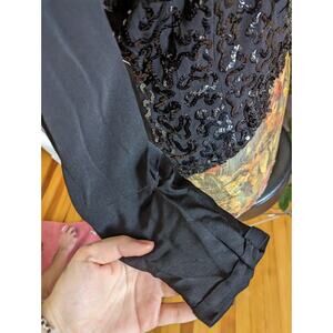 Vintage 1940s Silk Crepe Black Sequin Tie Back Button Blouse Sz M
