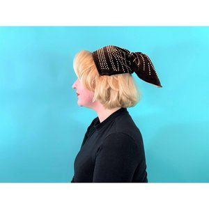 Vintage 1940s Snood Hat Brown Velvet Beaded Ponytail Headband