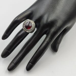 Vintage 1940s Sterling Silver 925 Lab Ruby Cabochon Signed Ring Sz 7 Unisex