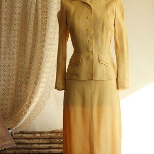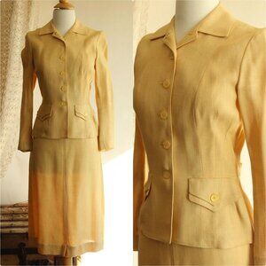 Vintage 1940s Suit, Arthur Jay Yellow Linen Two Piece Skirt And Jacket