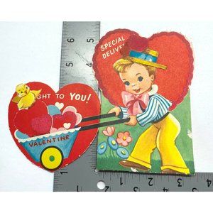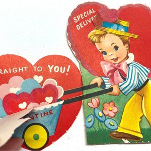 Vintage 1940s Valentine Greeting Card Special Delivery Hearts 5.5 Inch Tall