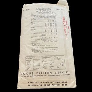 Vintage 1940's Vogue Pattern Size 18, Bust 36