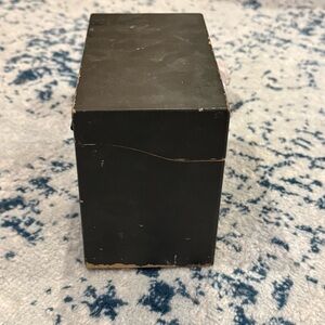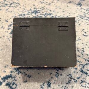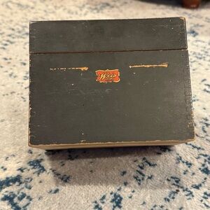 This vintage wood index card box is blackIt is in good shape with some scratches and wear on the exterior. Made by Weis manufacturing in Monroe, MI. Weis became Globe-Weis in 1963 and stopped manufacturin in Monroe, MI, so this box pre-dates that merger. Classic Weis label on front. They don't make them this sturdy anymore!