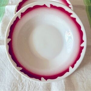Vintage Wallace China Restaurant Ware 9” bowls. Magenta| Red Air-brushed Border Design.