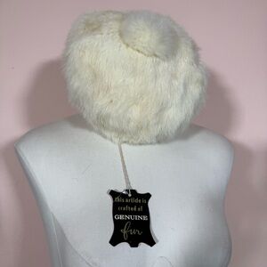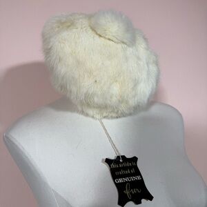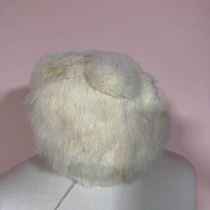 Vintage 1940’s White Rabbit Fur Barrett Winter Hat with Pom Pom