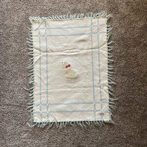 Vintage 1940's-1950's Baby Pepperell Blue Baby Crib Blanket with Dog