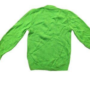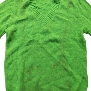 Vintage 1940s-1950s Bright Green Long Sleeve Knit V-Neck Sweater