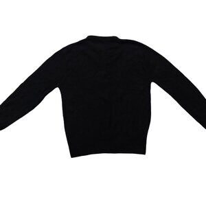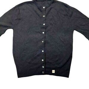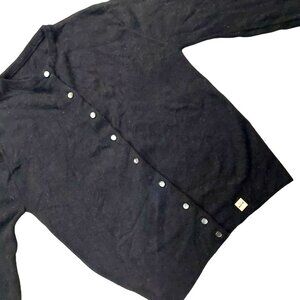 Vintage 1940s-1950s Solid Black Long Sleeve Cardigan Knit Fall Winter Sweater w/ Grey Buttons