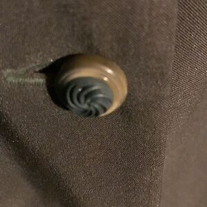 Buttons up front look like swirls of frosting on a cupcake , so amazing. Top button is plain because it’s hidden by the collar.No size tag. See measurements to ensure a proper fit I think it fits like a woman’s medium 8/10 but definitely check your measurements before purchasing