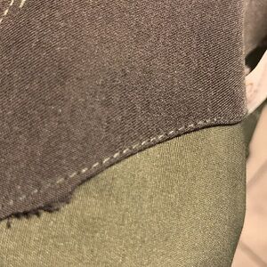 Hard to pinpoint the color of this- sometimes it looks army /olive green- sometimes it looks more brown. It’s fully lined in gorgeous green material and has intricate, durable machine stitching.They don’t make ‘em like this anymore.