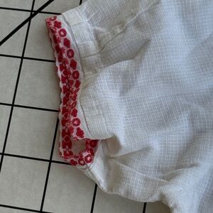 Vintage 1940s–50s Toddler Romper – White with Red Rooster Embroidery & Trim