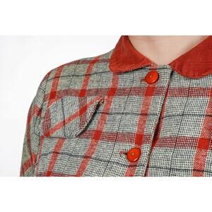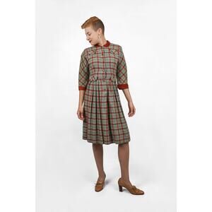 Vintage 1940s/50s Wool Plaid Button-up Shirt-Waist Dress w Corduroy Collar | S/M