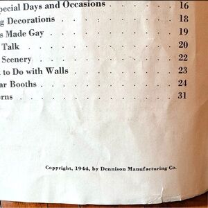 Add some nostalgic charm to your collection with this rare 1944 Dennison Manufacturing pamphlet, Gay Decorations for Parties, Dances, Banquets. This vintage booklet is filled with whimsical decoration ideas using crepe paper—perfect for collectors of Dennison ephemera, retro party supplies, or mid-century craft history.