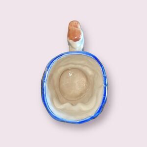 This vintage 1945-52 Made in Occupied Japan Character Mug features a unique painted face design, making it a collectible item perfect for all occasions. The medium-sized ceramic and porcelain mug is decorated in multicolor with a postwar style, embodying the theme of a painted face. With its hand-painted details and suitability for hot beverages, this original mug from the 1940s is a charming addition to any kitchen or home decor collection.