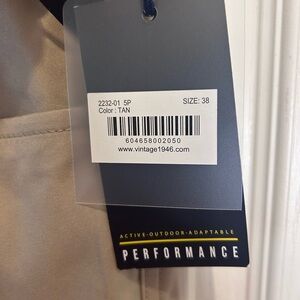🫒”Vintage 1946” NWT Men's Tan Flat Front Modern Fit Performance Chinos w/Pockets