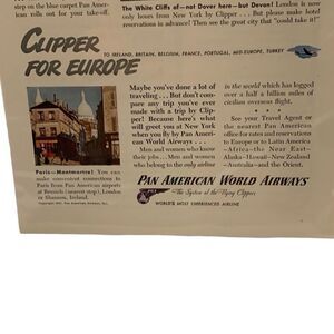 Vintage 1947 Pan American World Airways Clipper for Europe Ad Advertisement