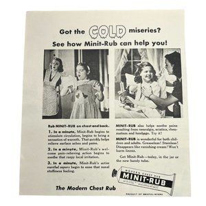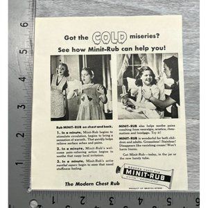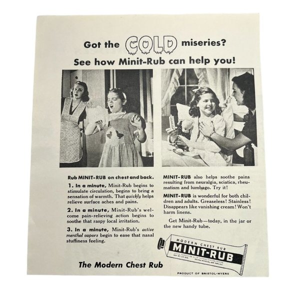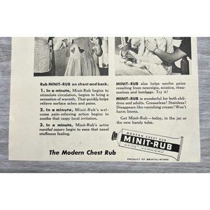 Vintage 1948 Minit Rub Print Ad Modern Chest Rub Bristol Myers Original Ad