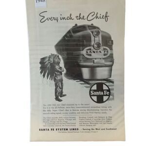 Vintage 1948 Santa Fe System Lines Rail Every Inch the Chief Ad Advertisement