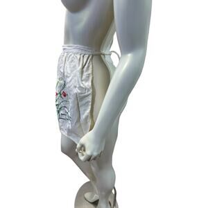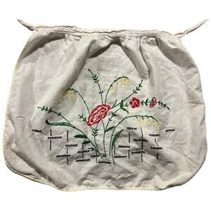 Vintage 1950 Half Apron White Cotton Hand Embroidered Floral Garden Apron Roses