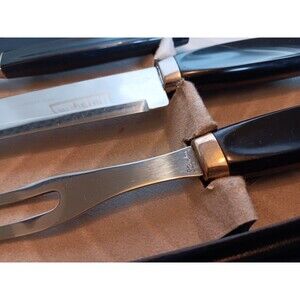 Crafted with the highest quality materials, this set is sure to impress your guests and elevate your dining experience. The knives are sharp and durable, making them perfect for carving through any meat dish. This set is a must-have for any collector or lover of vintage flatware.