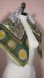 Beautiful ornate scarf with a exotic design of florals and Paisley. Lovely large square with a fringed hem. Colors of rich yellow and golds, royal blue and navy on a bed or pure white. 100% acrylic that is smooth and warm. Perfect for over a shoulder on a chilly evening. A refined weave and print.