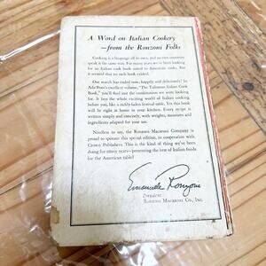 Rare vintage hardcover edition of The Talisman Italian Cook Book by Ada Boni. This iconic cookbook is a beloved classic in Italian culinary literature. Originally published in 1950, it features traditional recipes from regions like Milan, Bologna, Sicily, Venice, and Rome. The cover shows signs of wear consistent with age, but the binding remains intact and pages are readable. A must-have for vintage cookbook collectors, Italian food lovers, and nostalgic home cooks.