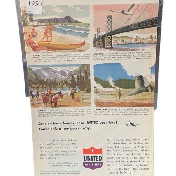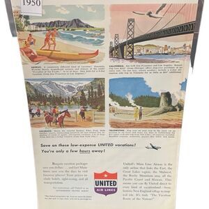 Vintage 1950 United Air Lines These Low Expense United Vactions Ad Advertisement