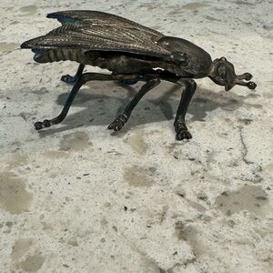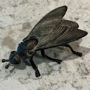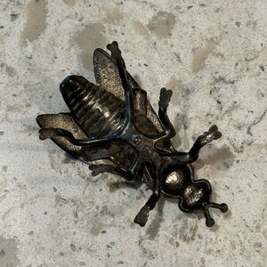 Vintage 1950-60’s~Brass~Italian Ashtray~in Form of a Fly with Patina~Body Hinges Open~Reveals Ashtray Underneath~Great Decorative Design & Conversation Piece~Made in Spain~2 1/4” x 4” x 1 3/8” T