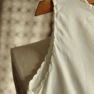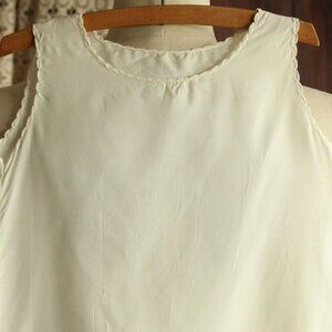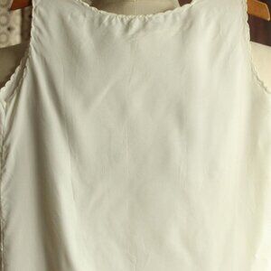 Beautiful vintage 1950s cotton baby girls dress. White with gathered stitching trim at the bottom and then again around the neckline and arm openings. This would most likely have been the under slip but is perfect as a little dress on its own today. Loks and feels like a soft acetate or similar.