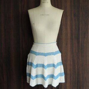 Lovely vintage half apron circa the 1950s or 1960s in white and sky blue. Scalloped edges and short ties round the back. At it's longest point the apron is 17" from waist to bottom. The ties are shorter than usual aprons so please bear that in mind.
