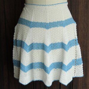 Vintage 1950s 1960s Half Apron, Crocheted in White and Blue, Retro Kitchen