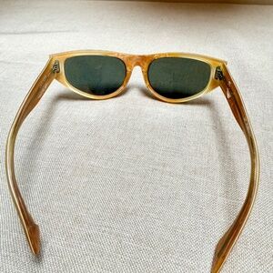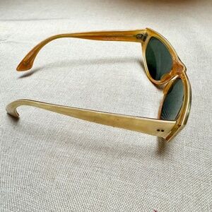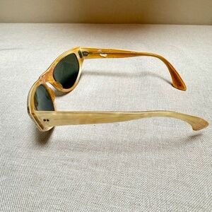 These vintage sunglasses measure 5 inches from temple to temple. They are quite small. They are marbled celluloid and vintage from the 1950s or 60s. They are marked Ray-Ban Playtime on the inside of the stems. The lenses are in overall good condition. Awesome vintage find!