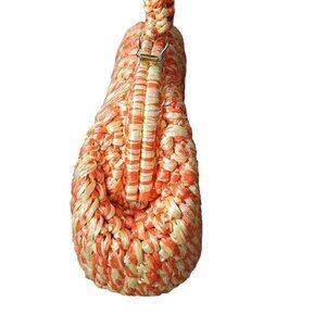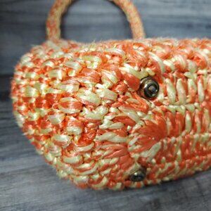 Vintage 1950s 1960s Orange And Yellow Crochet Raffia Handbag Purse Rare in color