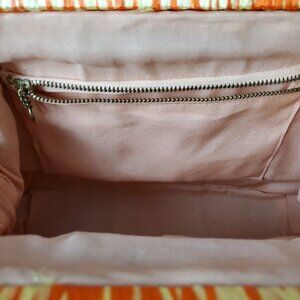 Vintage 1950s 1960s Orange And Yellow Crochet Raffia Handbag Purse