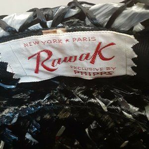 Vintage 1950's 1960s Pillbox Hat Black and White with orange ribbon.