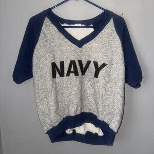 Vintage 1950s 1960s US Navy Short Sleeve Sweatshirt Grey And Blue Large True VTG