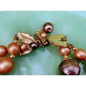 Vintage 1950s 2 Strand Beaded Necklace cluster clip earrings Set